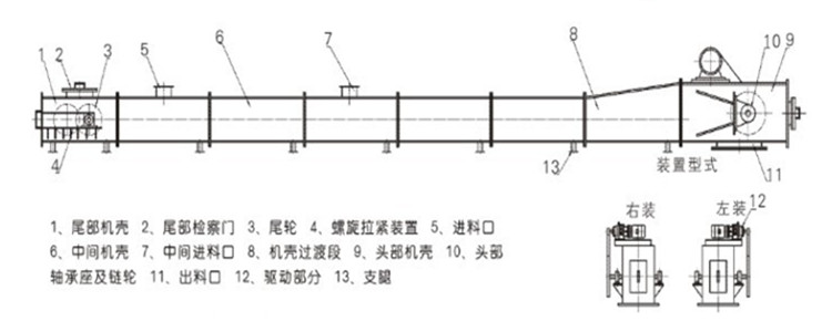 6.整機(jī)壽命高,運(yùn)行平衡,結(jié)構(gòu)簡單、合理、密封性強(qiáng),安裝使用方便,組合快捷,工作安全可靠,能水平、傾斜、垂直輸送,也能多點(diǎn)加料、卸料,工藝布置較為靈活。